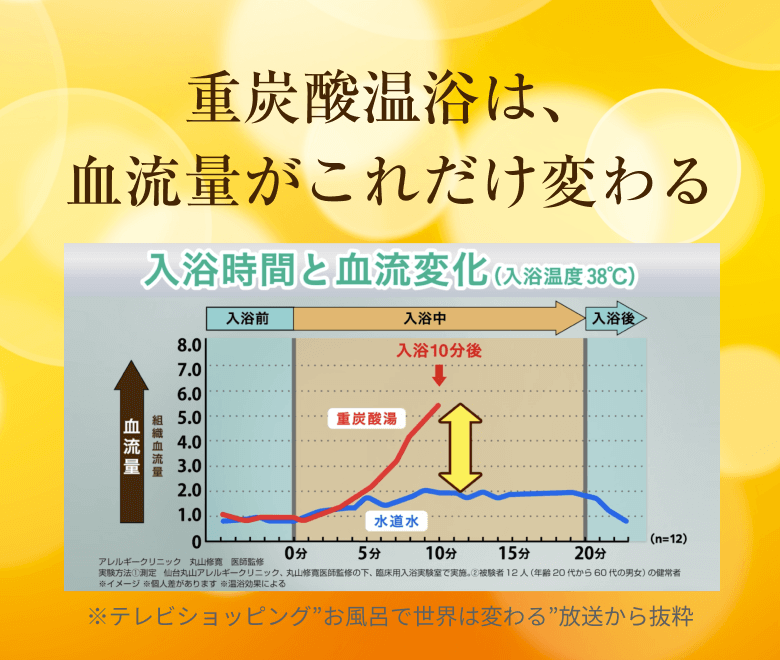 重炭酸イオンは湯中から空気中に逃げることがほとんどないため長時間に渡って濃度が持続します。 -