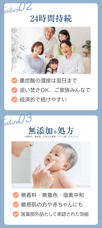 さらに、塩素中和が期待でき、無香料・無着色で作られているので肌の弱い方や赤ちゃんへもお使いいただけます。 -