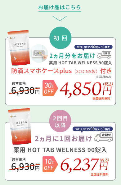 ※毎月お届けする定期便の初回キャンペーン価格( 30%OFFの4,850円 ※防滴スマホケース付き)、2回目から10%OFFの6,237円でのご提供となります。