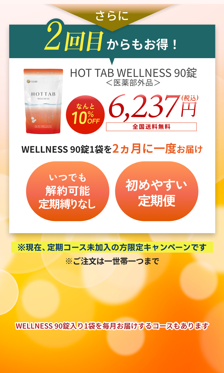 ・お届け品:薬用 HOT TAB WELLNESS 90錠入り